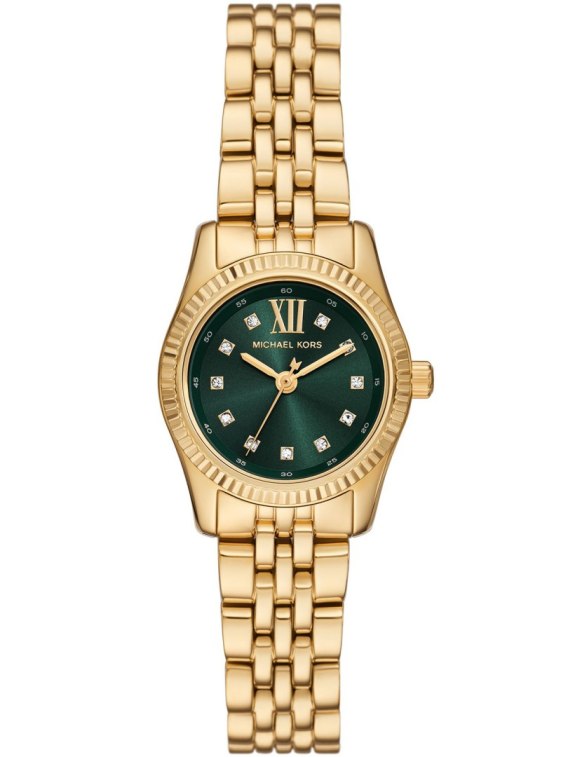 Michael Kors Lexington MK4842 to elegancki zegarek damski, który zadowoli panie poszukujące połączenia klasyki i współczesnego stylu. Jego precyzyjny mechanizm kwarcowy gwarantuje niezawodność, a koperta w kolorze złota, wykonana z wysokiej jakości stali nierdzewnej, doskonale kontrastuje z zieloną tarczą. Mineralne szkło zapewnia ochronę przed uszkodzeniami i zarysowaniami, a solidna złota bransoleta z tej samej stali zapewnia wygodę noszenia i długowieczność.