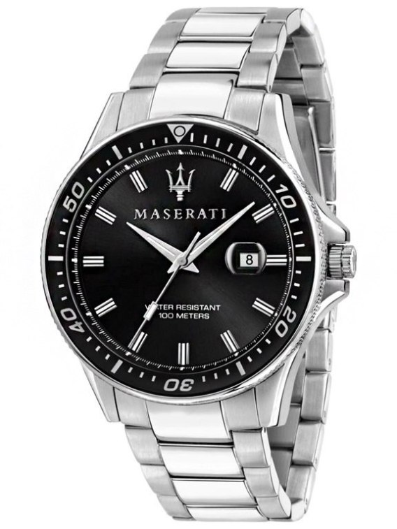 Zegarek Maserati R8853140002 Sfida to elegancki i nowoczesny zegarek dla wymagających i bezkompromisowych mężczyzn. Na czarnej tarczy zabezpieczonej mineralnym szkłem i otoczonej czarnym pierścieniem znajdziemy datownik wskazujący dzień miesiąca.