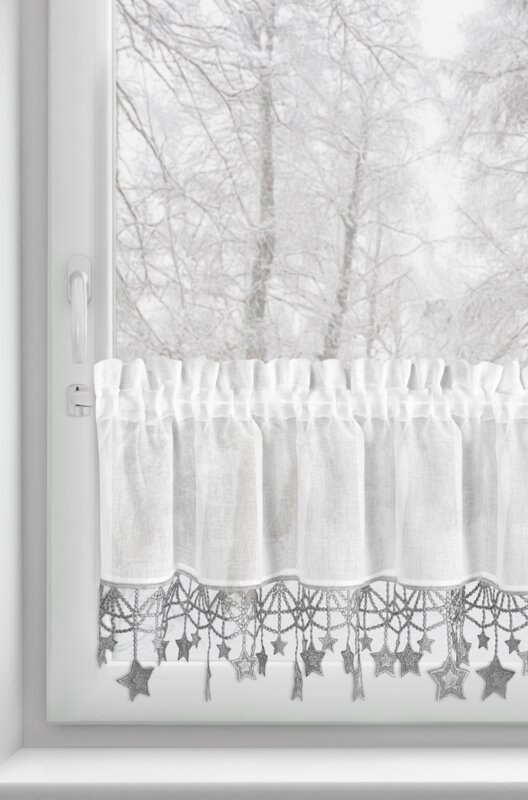 Zazdrostka biało, srebrna z etaminy zdobiona świątecznymi gwiazdkami 150x30 cm tunel - XMAS