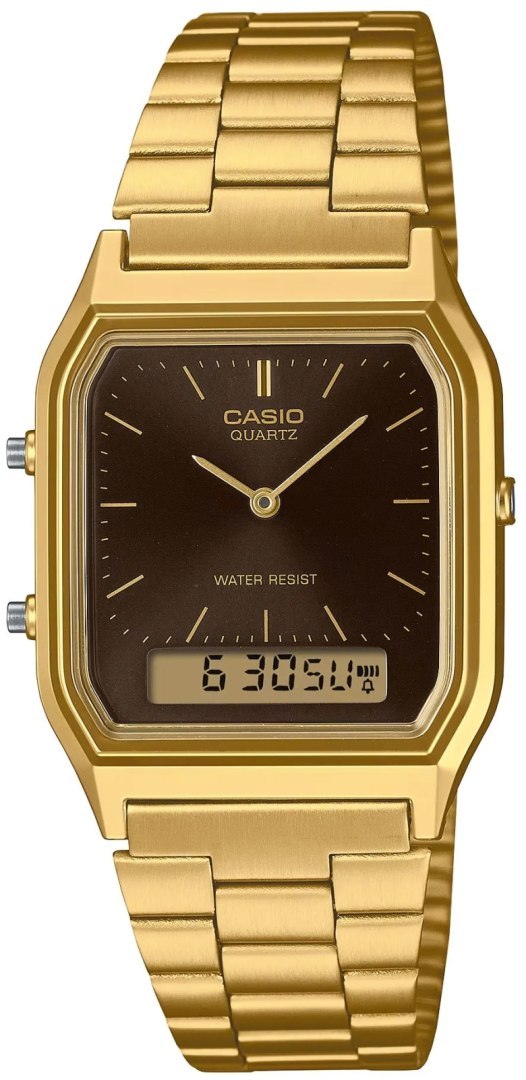 Casio AQ-230GA to zegarek, który łączy prestiż, funkcjonalność i ponadczasową estetykę. Idealny wybór dla tych, którzy cenią styl vintage, ale nie chcą rezygnować z nowoczesnych rozwiązań. Casio AQ-230GA to nie tylko piękny design, ale również doskonała precyzja działania. Podwójny wyświetlacz analogowo-cyfrowy pozwala na kontrolowanie czasu w dwóch strefach jednocześnie, a dodatkowe funkcje, takie jak alarm, stoper i kalendarz automatyczny, zwiększają jego praktyczność.