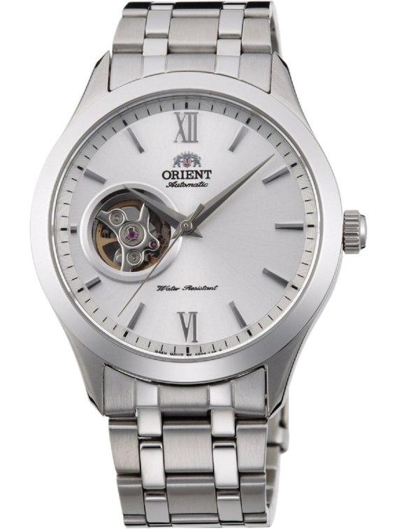 Czasomierz Orient FAG03001W0 to elegancki klasyczny męski zegarek do codziennego użytku, jak i na wyjątkowe okazji. Czytelną, srebrną tarczę typu open heart przykryto sferycznym szkiełkiem mineralnym, dobrze chroniącym zarówno przed ewentualnymi zarysowaniami. Czasomierz działa w oparciu o niesłychanie dokładny japoński mechanizm z automatycznym naciągiem.