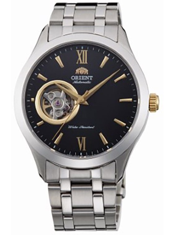 Czasomierz Orient FAG03002B0 to elegancki klasyczny męski zegarek do codziennego użytku, jak i na wyjątkowe okazji. Czytelną, czarną tarczę typu open heart przykryto sferycznym szkiełkiem mineralnym, dobrze chroniącym zarówno przed ewentualnymi zarysowaniami. Czasomierz działa w oparciu o niesłychanie dokładny japoński mechanizm z automatycznym naciągiem.