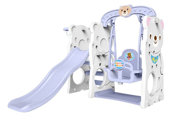 Zjeżdżalnia ogrodowa 3w1 Huśtawka Koszykówka dla dzieci Miś biały